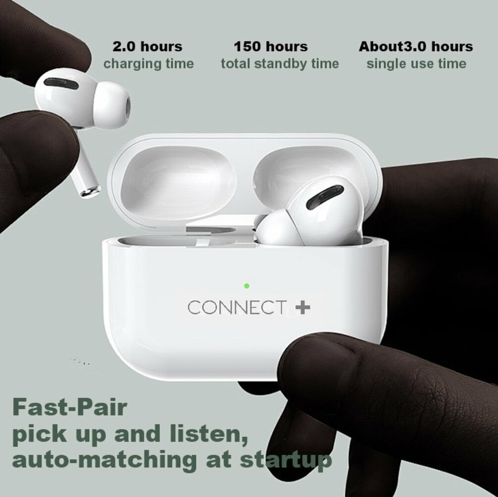 Connect + AirPod Pro have designed a new class of in-ear headphones with a customisable fit that forms an exceptional seal for active noise cancellation. You’ll feel your music, not your headphones.. They have a slick design with a customisable fit for all day comfort. They are magic like you've never heard before. Enjoy superior sound quality with adaptive EQ, which automatically tunes music to the shape of your ear for a rich, consistent listening experience. Connect + AirPod Pro are sweat and water resistant, and they feature an expanded mesh microphone port that improves call clarity in windy locations.
